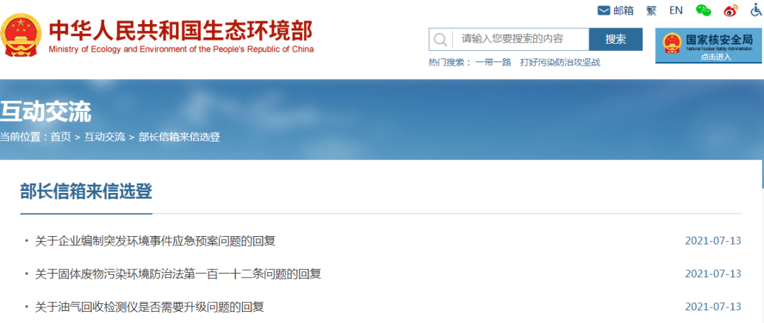 部長(zhǎng)信箱 | 關(guān)于企業(yè)編制突發(fā)環(huán)境事件應(yīng)急預(yù)案等問題的回復(fù)[2021-07-16]